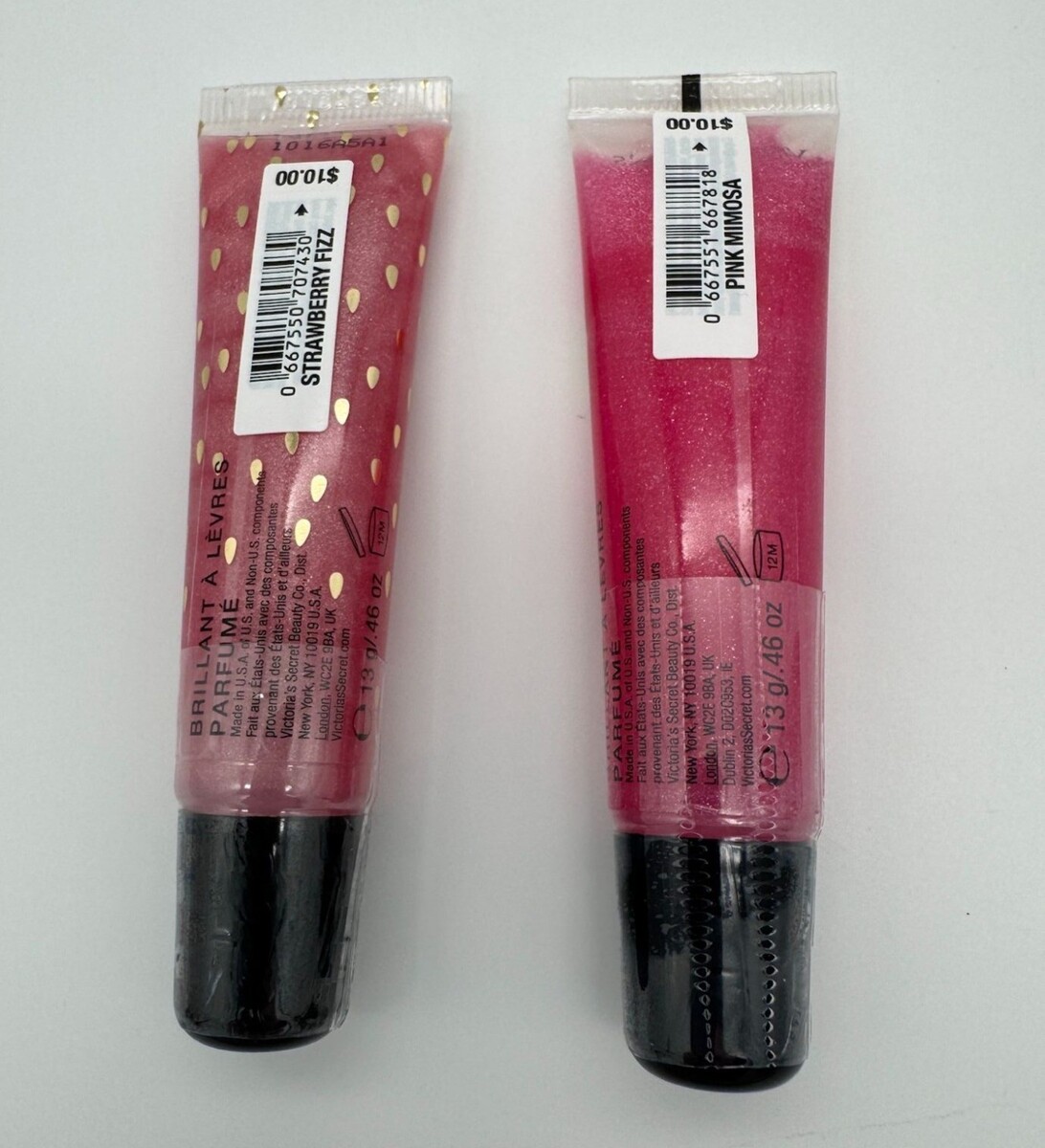 Victoria's Secret Flavored Lip Gloss Strawberry Fizz & Pink Mimosa 0.46 oz 13g
