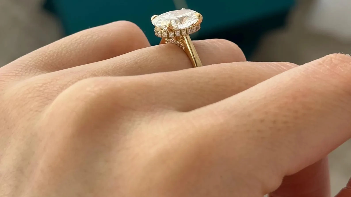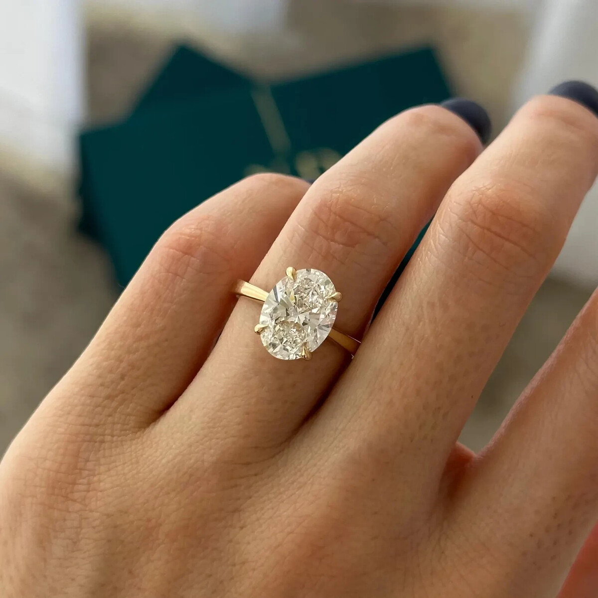 4 Ct Oval E VVS2 Lab Grown Diamond Hidden Halo 14k Yellow Gold Engagement Ring