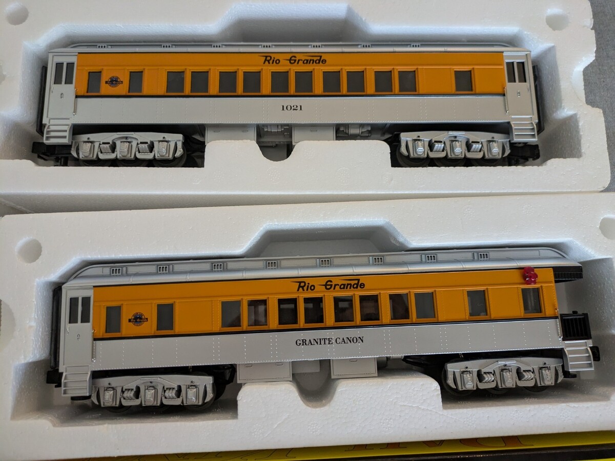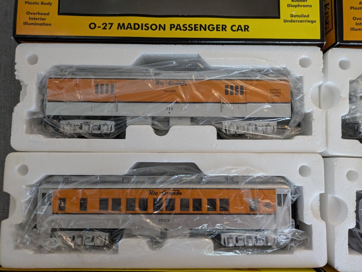 Il prodotto e un lotto di quattro vagoni passeggeri per bagagli di osservazione Rail King Denver Rio Grande Madison in scartamento O-27. Queste autovetture sono progettate per replicare il nome della strada aziendale del Pacifico meridionale, fornendo autenticita ai modellini ferroviari. Con un design vintage, queste carrozze sono ideali per collezionisti o hobbisti che desiderano arricchire la propria collezione di modellini ferroviari con carrozze passeggeri di alta qualita.