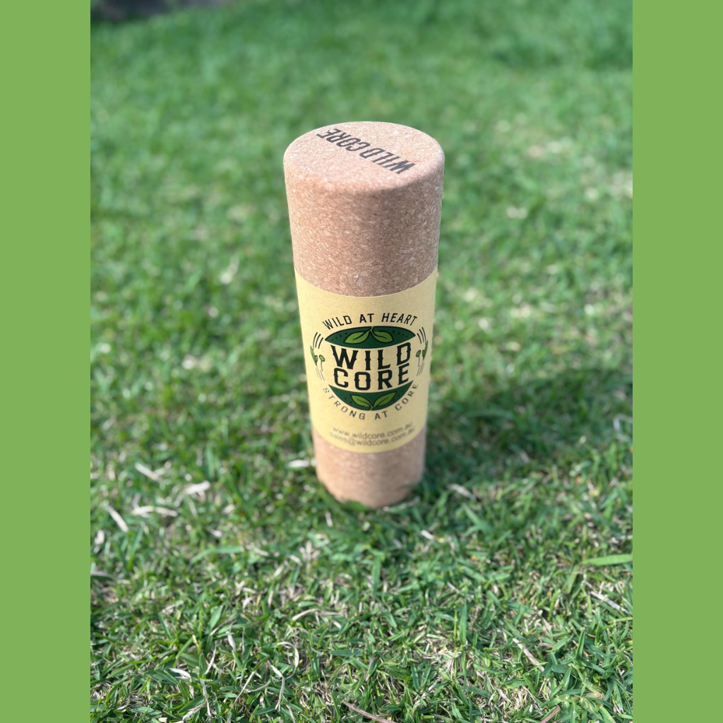 Set yoga Wild Core 3-pezzi in sughero — tappetino, rullo e blocco in un unico kit ecologico.