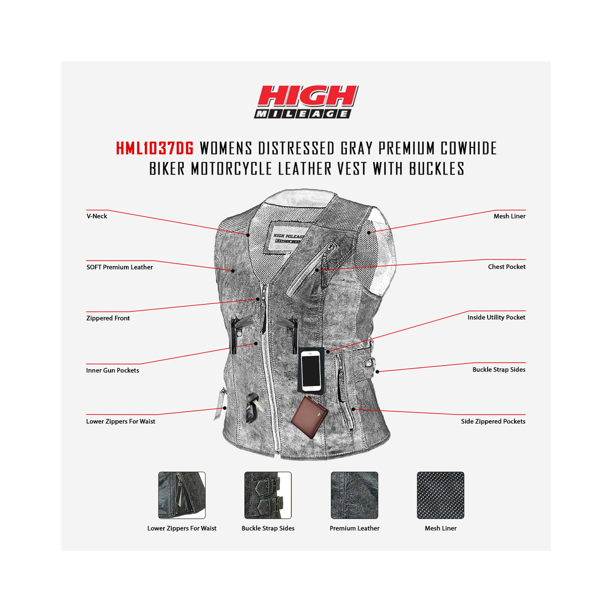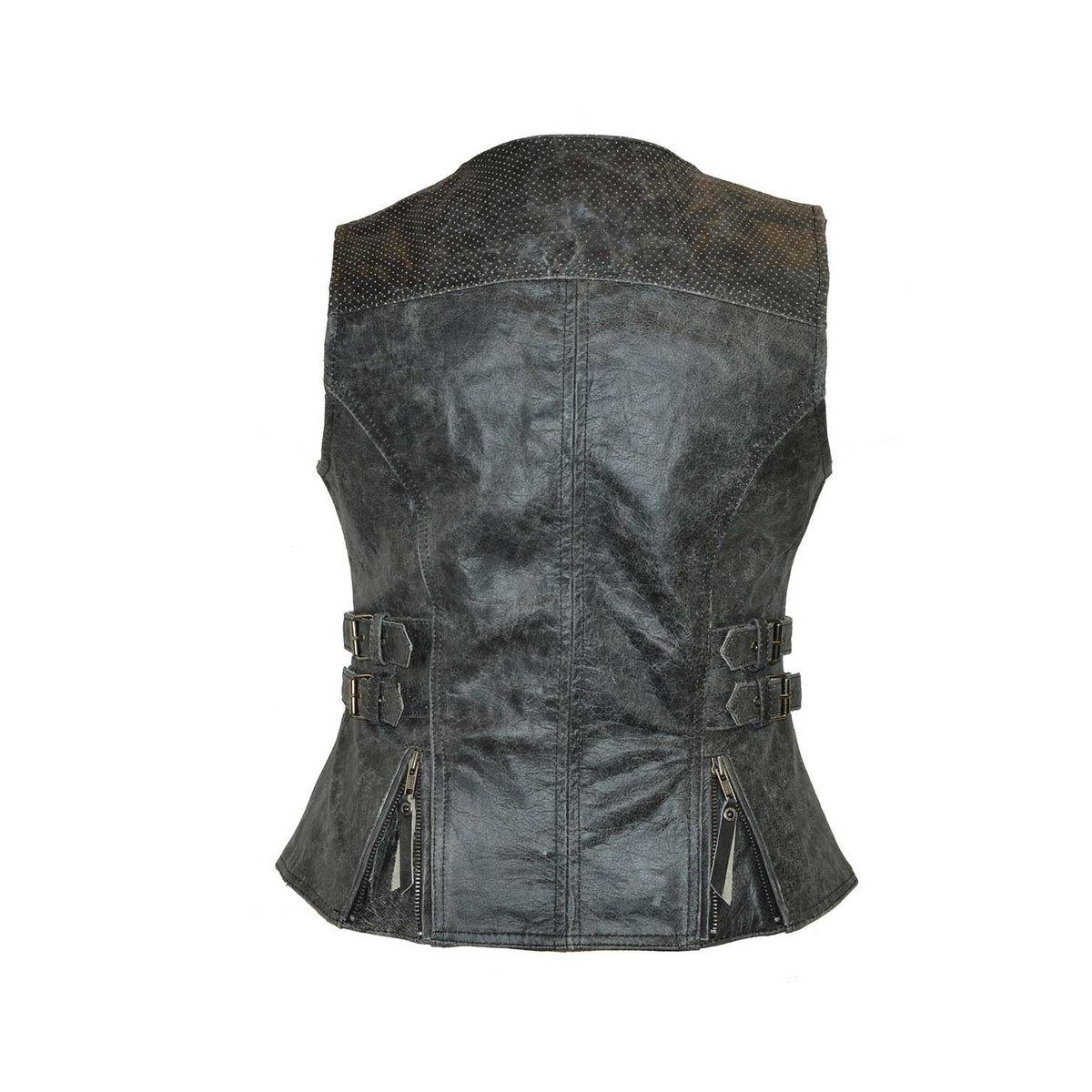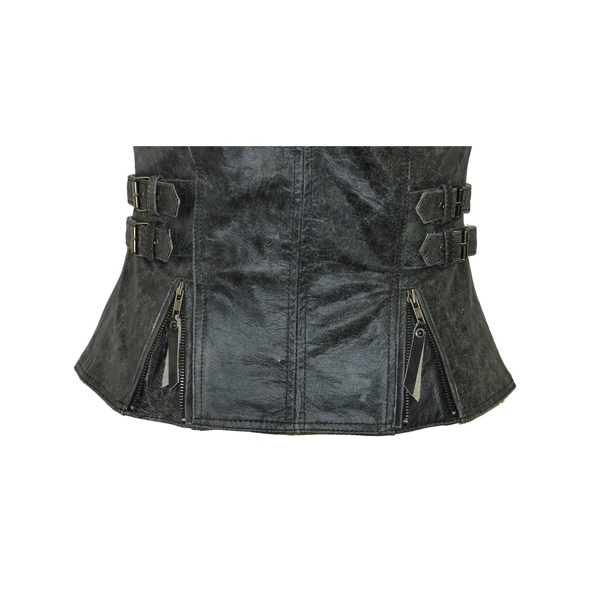 Ladies Distressed Gray Premium Leather Concealed Carry Motorcycle Vest - 715547