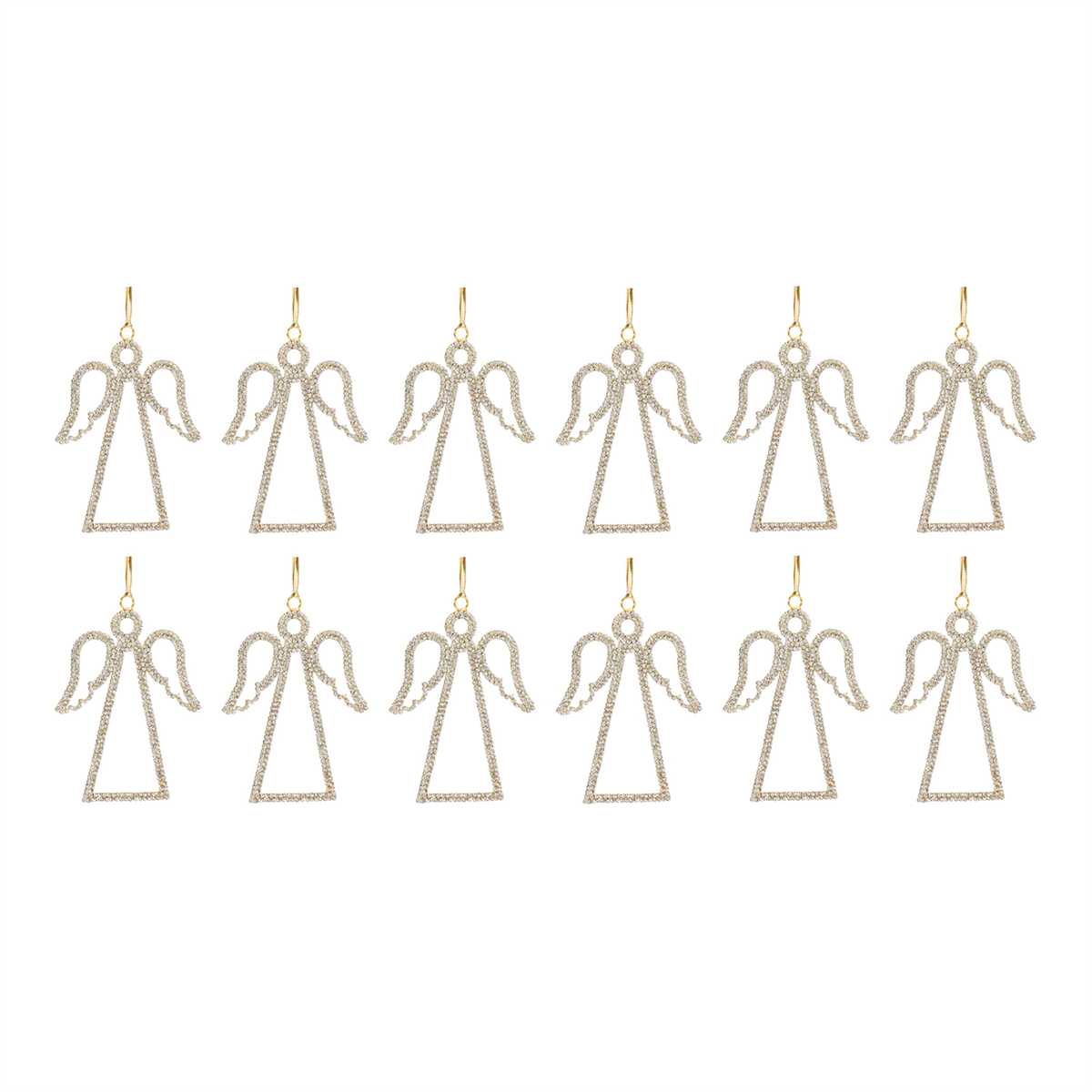 Elegant Design: Intricate angel outline with jewel accents in chic gold and white tones, perfect for adding a religious touch to your Christmas tree. Durable Quality: Made from high-quality iron and glass, ensuring these ornaments last for many holiday seasons. Versatile and Thoughtful Gift: This set of 12 ornaments makes a wonderful gift or addition to your own home, spreading holiday cheer and timeless beauty. Suitable for indoor use only