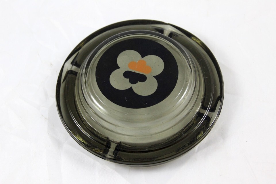 Round Glass Ashtray Hyatt Hotel Holds 4 Cigarettes Smoked Glass 4-1/2"