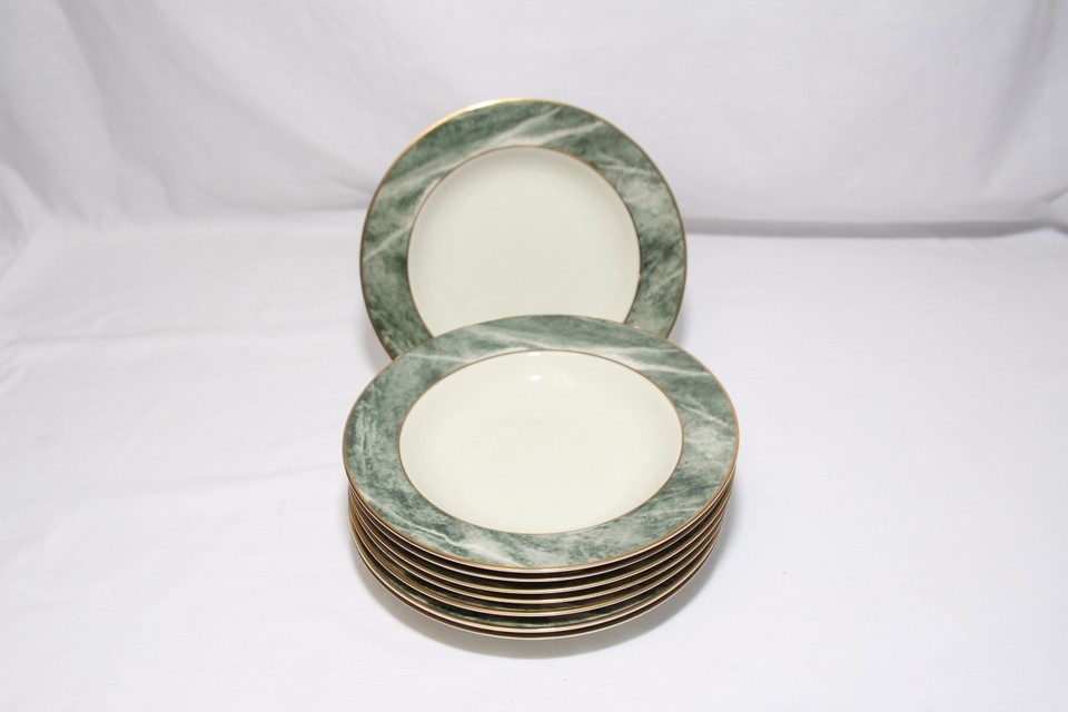 Mikasa Travertine Green Rim Soup Bowls 8-1/2" Lot of 8