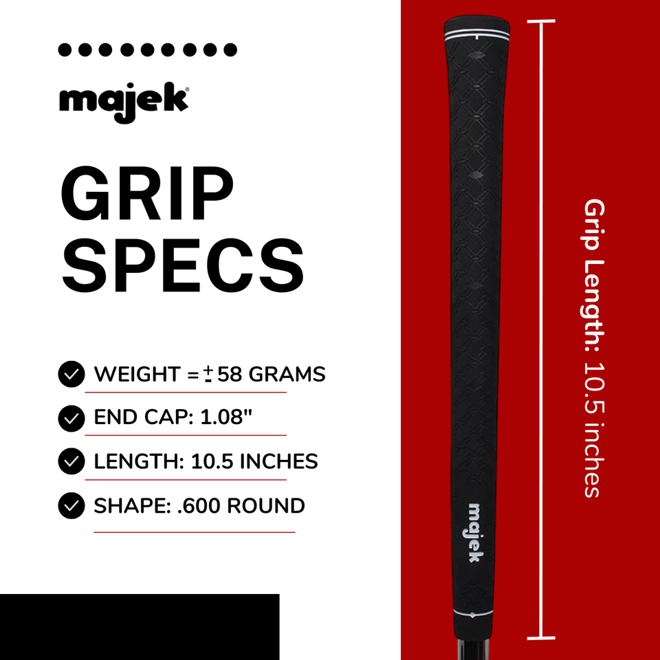 Our Majek Grips are currently used in hundreds of thousands of clubs with great success. They were Co-Engineered by members of the UCLA?s engineering department ensuring a state-of-the-art rubber blend compound. The advance computer design assures a non-slip surface pattern for maximum comfort, playability, and confidence. The Tour Pro Grip is the benchmark upon which many club manufacturers base their designs.