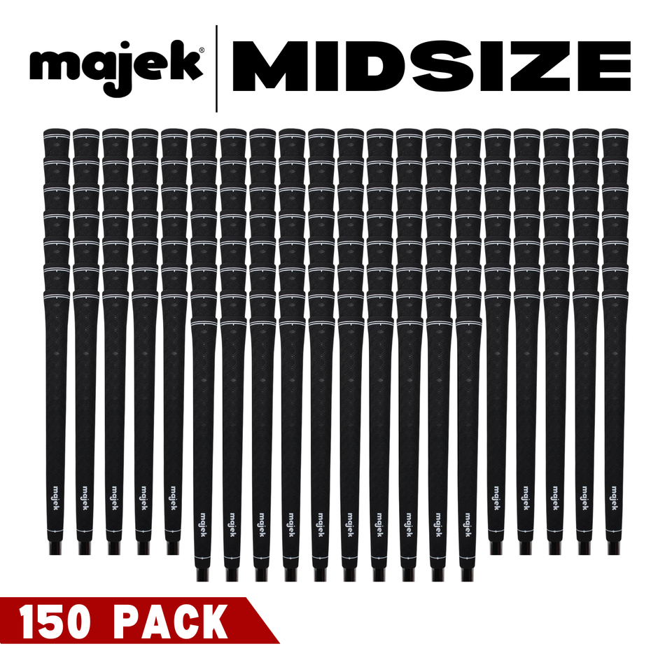 Majek Mens Tour Pro Black Midsize LOGO Golf Grips Bulk Pack - 150 PACK