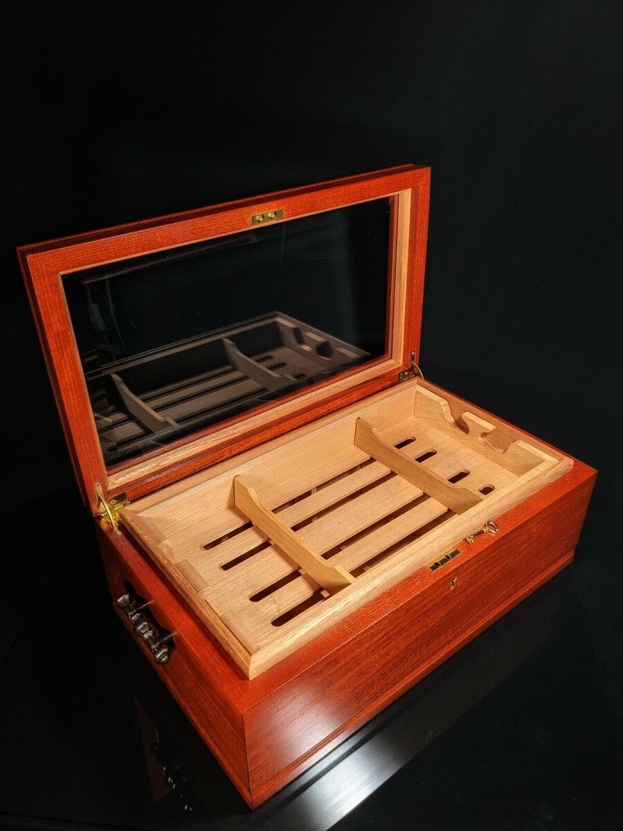 CIGAR HUMIDOR BY REED AND BARTON LARGE - THICK BEVELED GLASS NIB