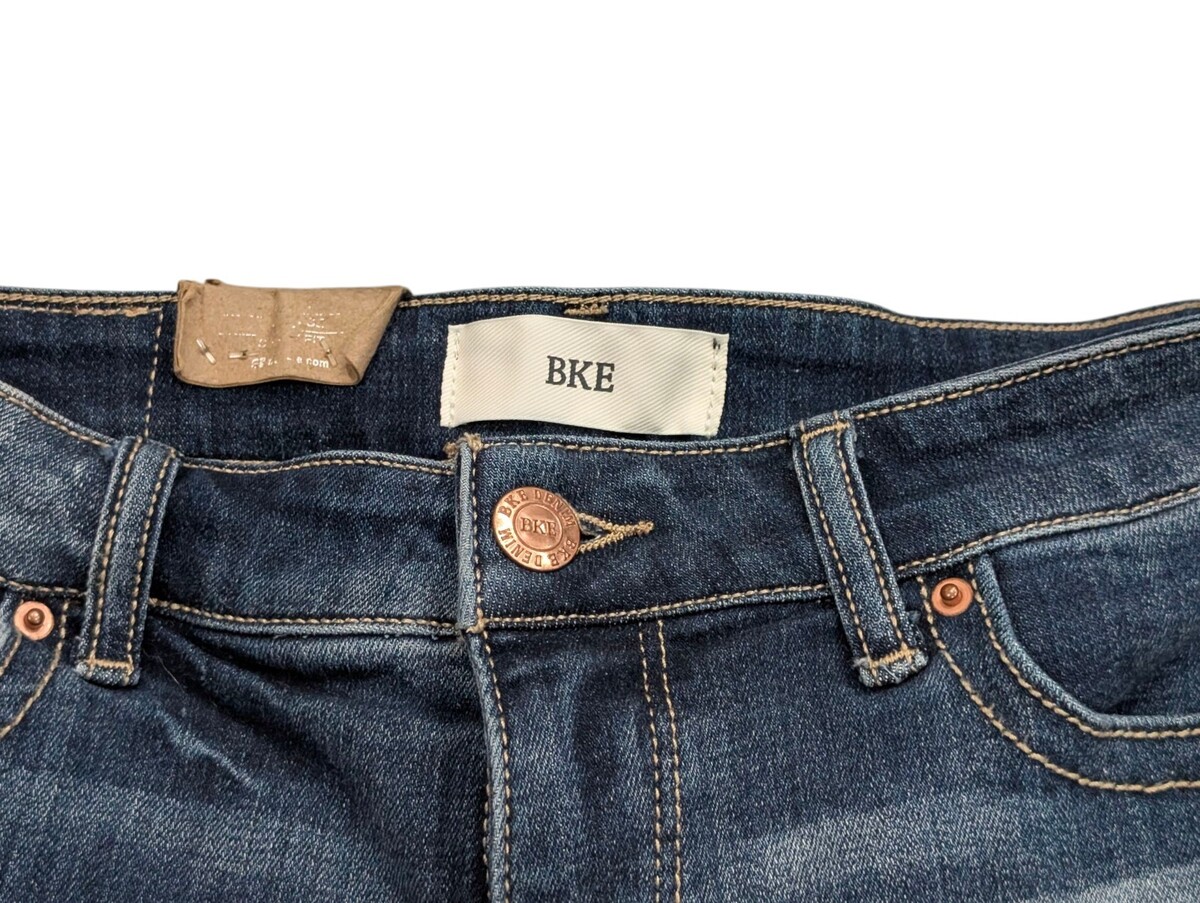 These are women's BK denim jeans from The Buckle. The style is Gabby. They are size 26 with a 5-in inseam. 99% cotton and 1% spandex. These are brand new with tags with the tag on the back is kind of ripped as you can see it in the pictures.