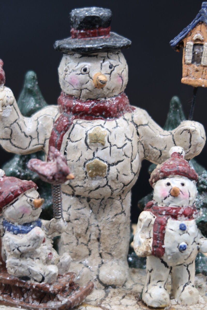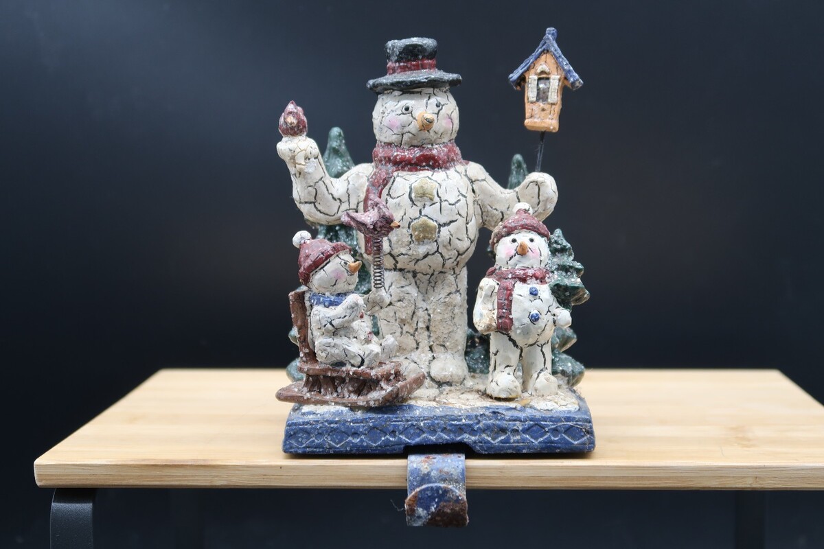 Vtg Snowman Family Sleigh Stocking Hanger Christmas Winter Fireplace Birdhouse