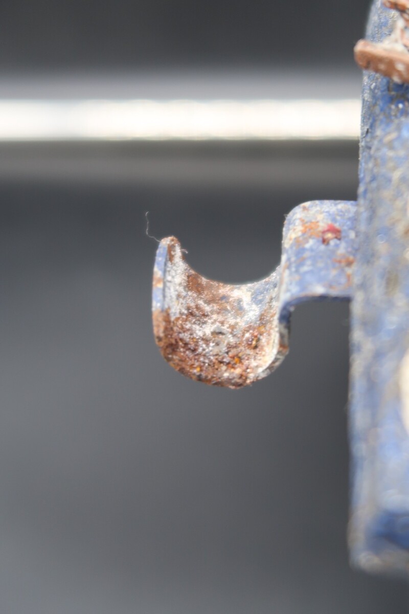 Needs a little touch up paint for the hook surface rust. Wear and imperfections consistent with age and being handled. Please carefully examine all pictures before purchasing. The pictures are an important part of the description, and usually include important measurements. Items are in good pre-owned condition unless otherwise noted.