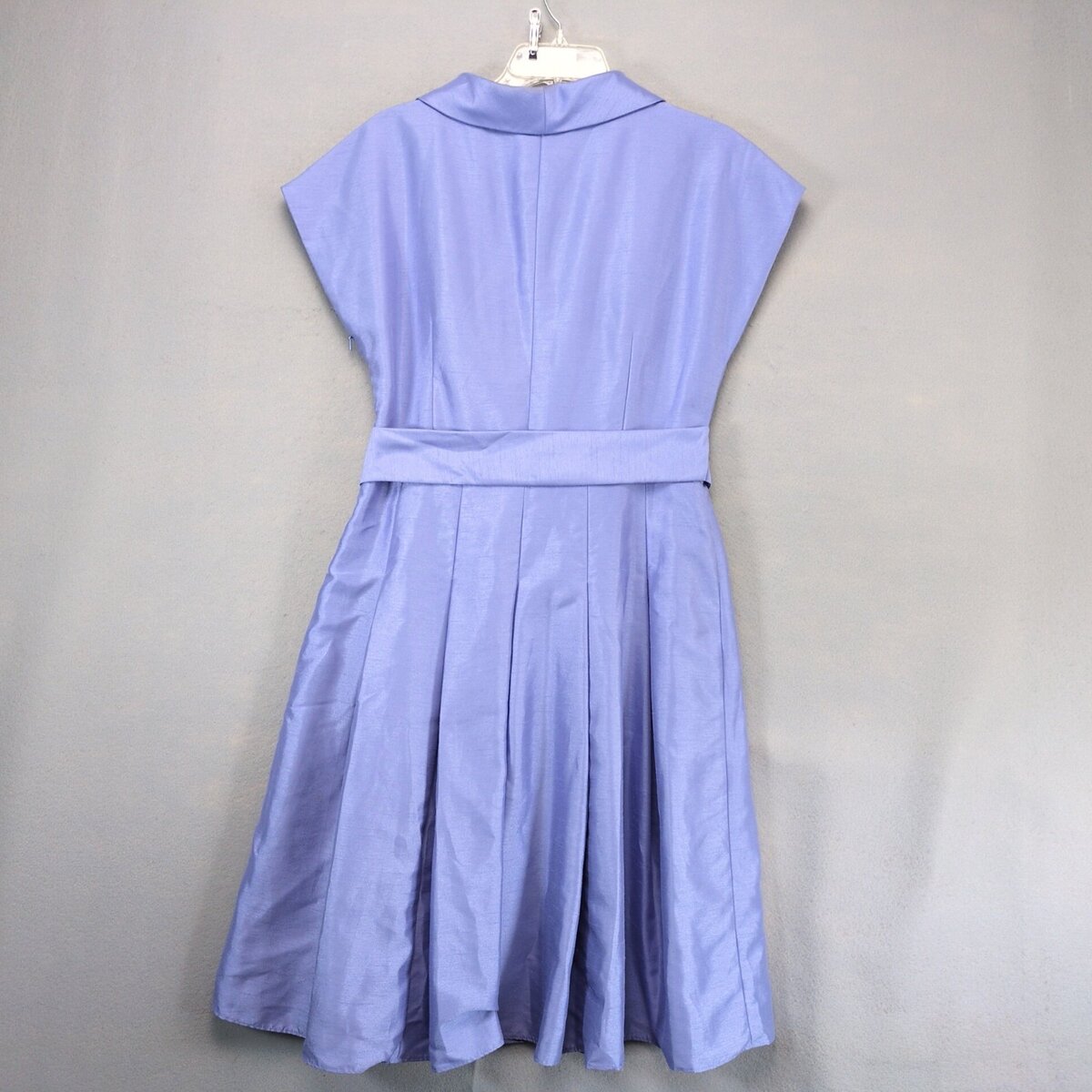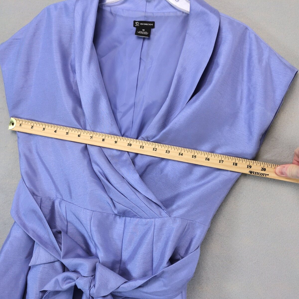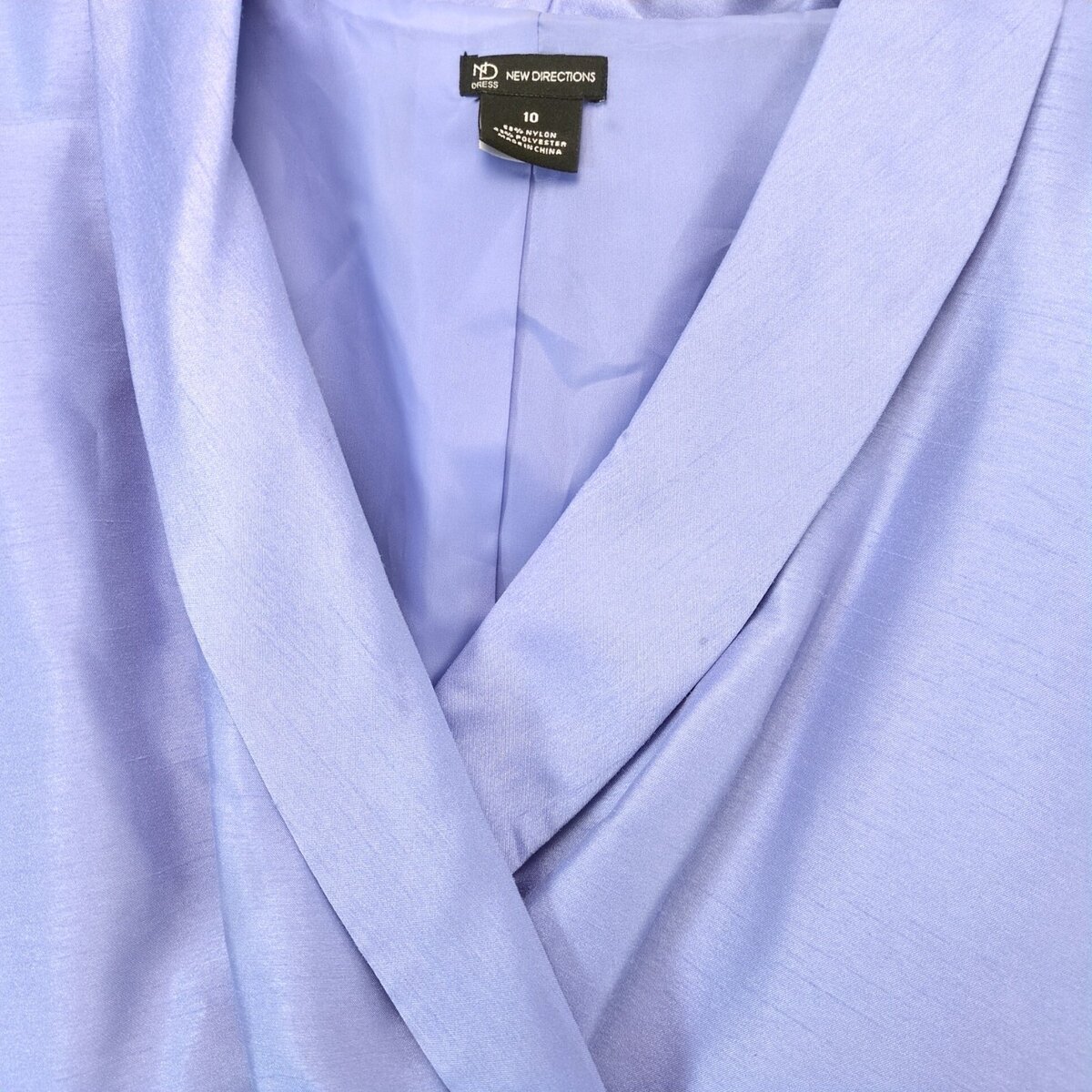 New Directions Lavender Fit Flare Wrap Dress Sz 10 Textured Satin Pleated Belt
