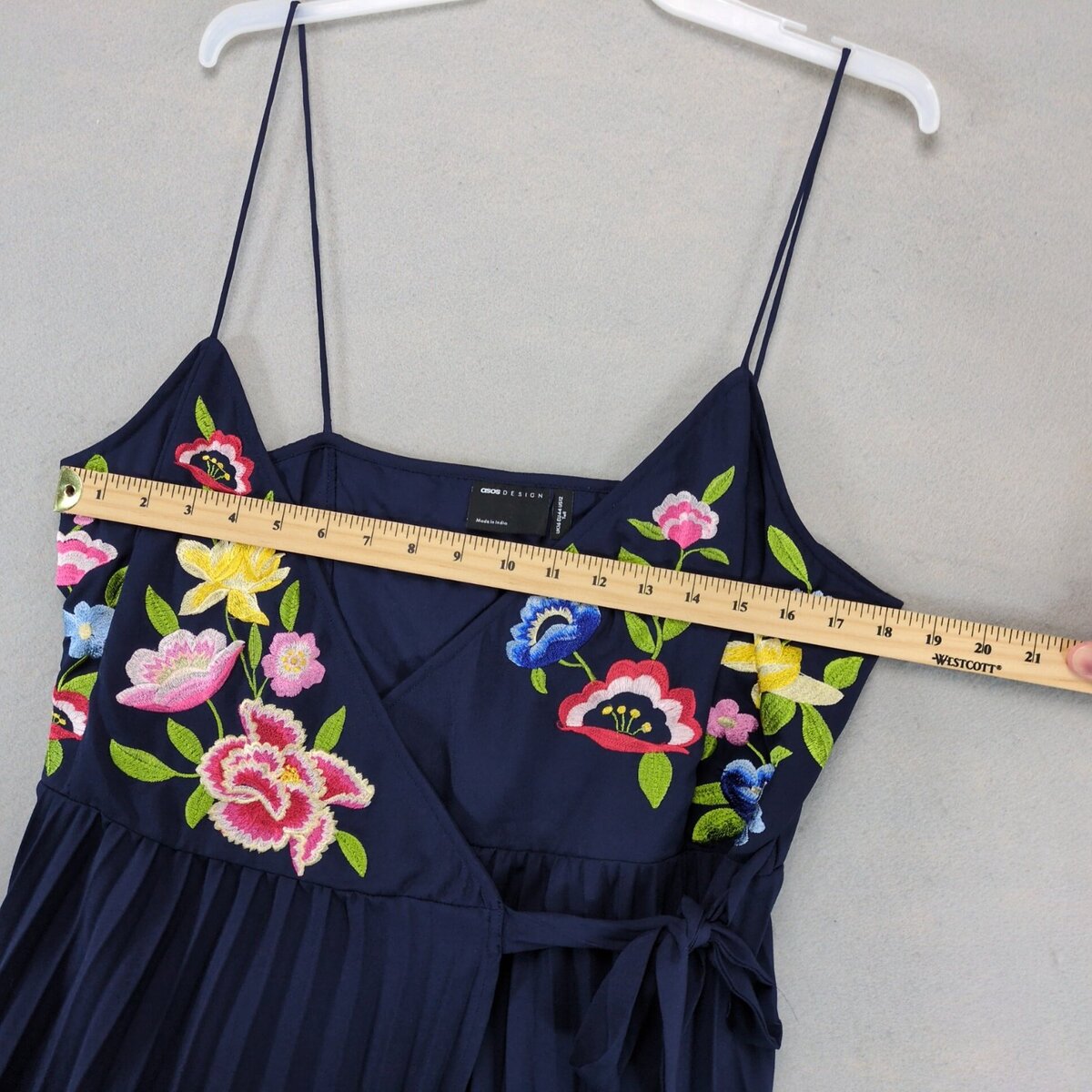 ASOS Design Navy Floral Embroidered Maxi Wrap Dress 12 Tall Pleated Sleeveless