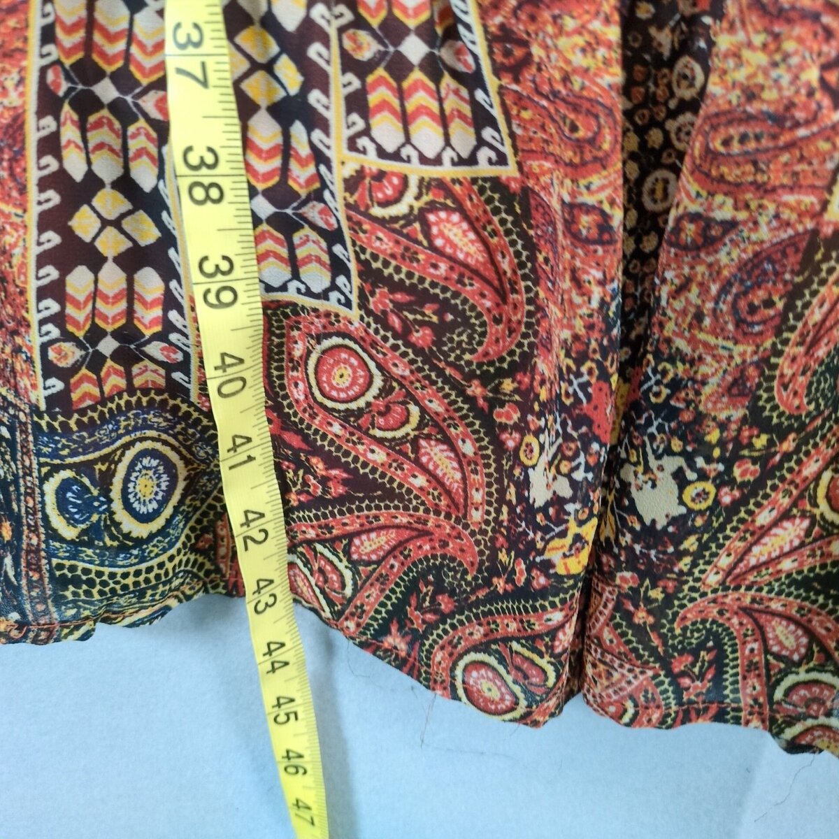 Features: Blouson, Bow, Ruffle, Midi, 3/4 Sleeve, Pullover Closure, Paisley Pattern, Elastic Cuffs, Elastic Waist, Keyhole Neck, Lined, Sheer, Tiered, Machine Washable