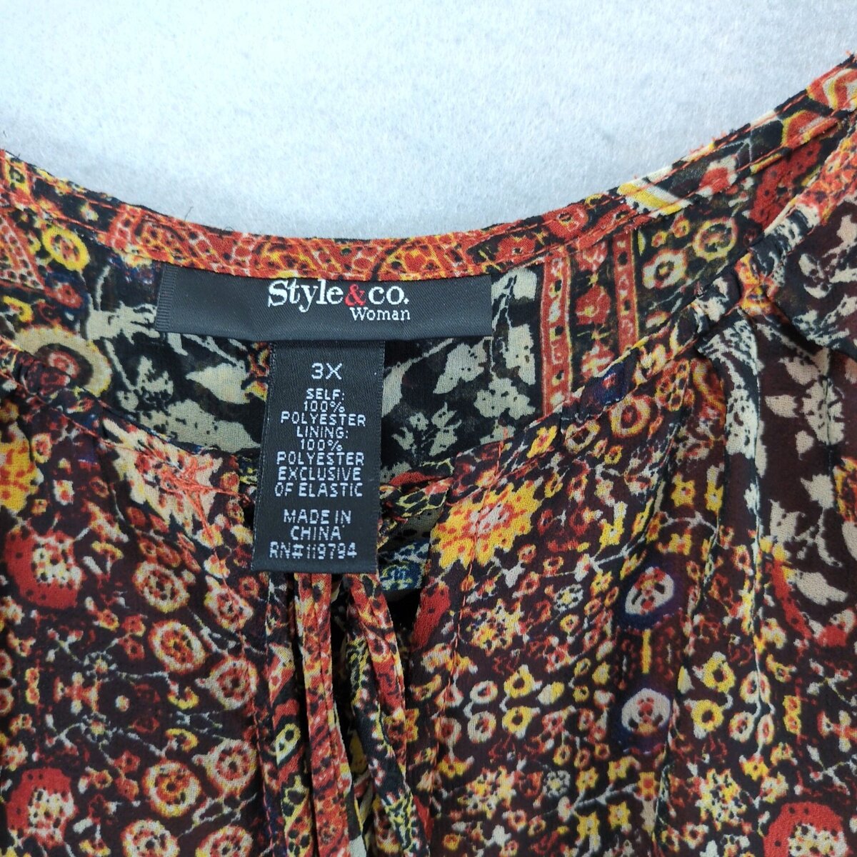Style & Co Sheer Paisley Blouson Midi Dress Plus Size 3X Puff Slv Whimsigoth Y2K