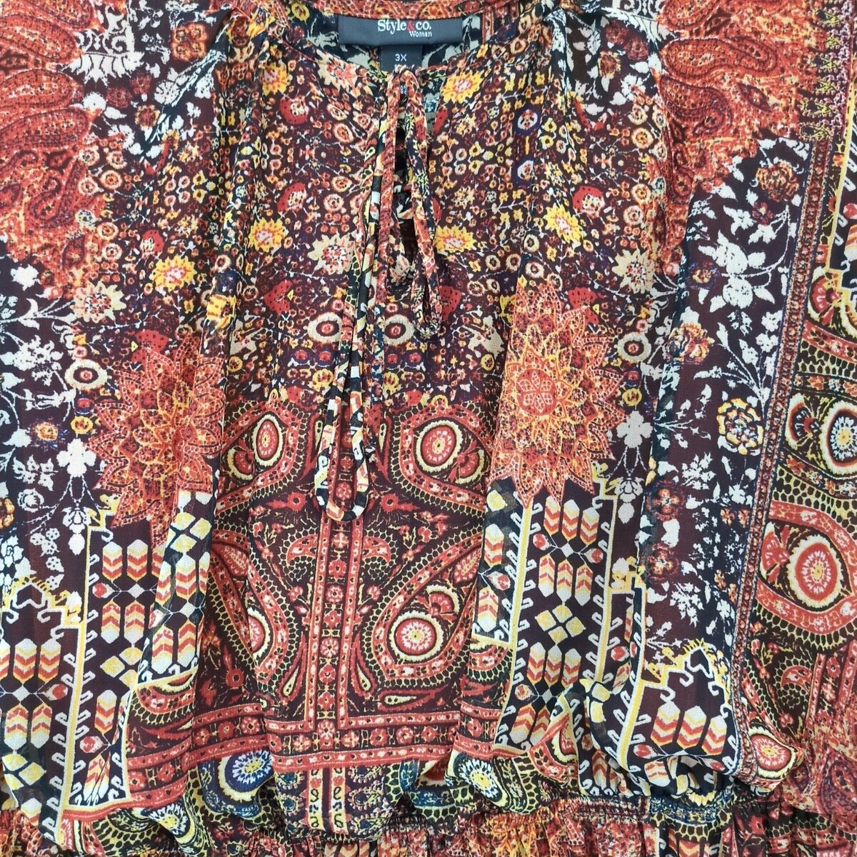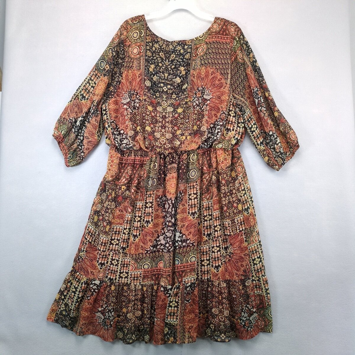 Style Co Sheer Paisley Blouson Midi Dress Plus Size 3X Puff Slv Whimsigoth Y2K