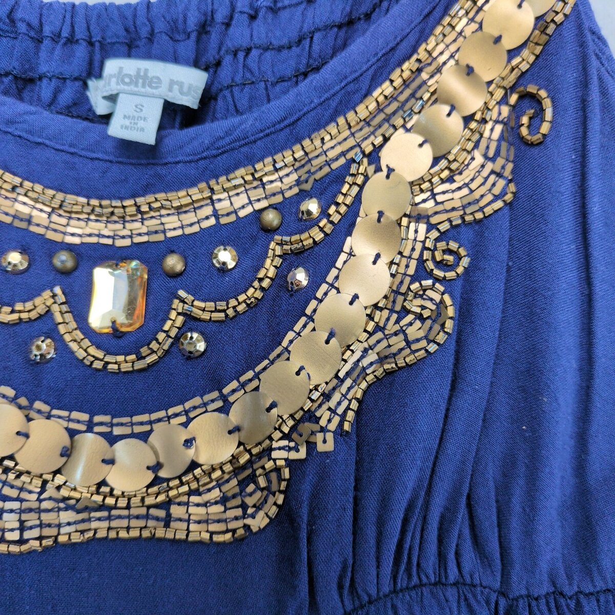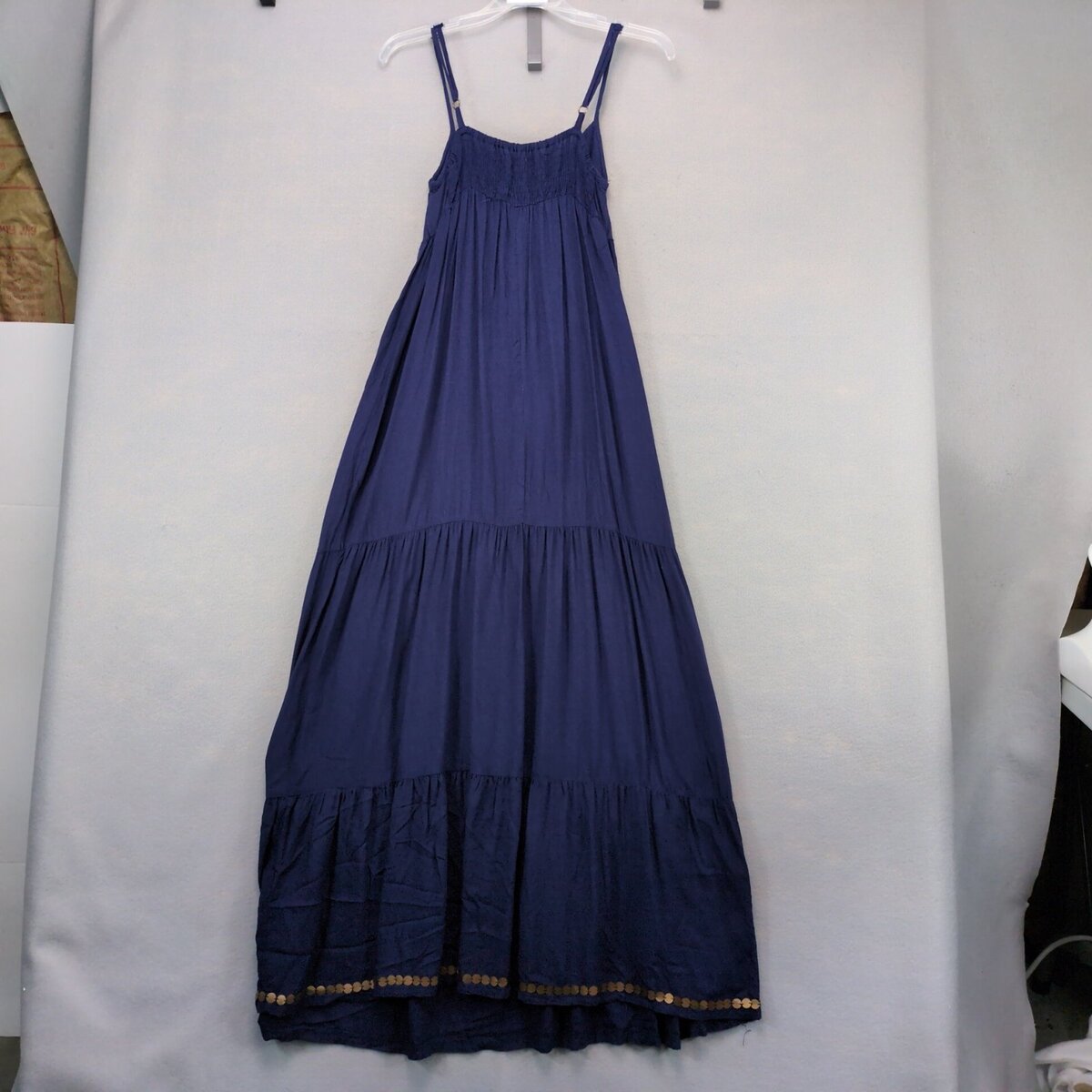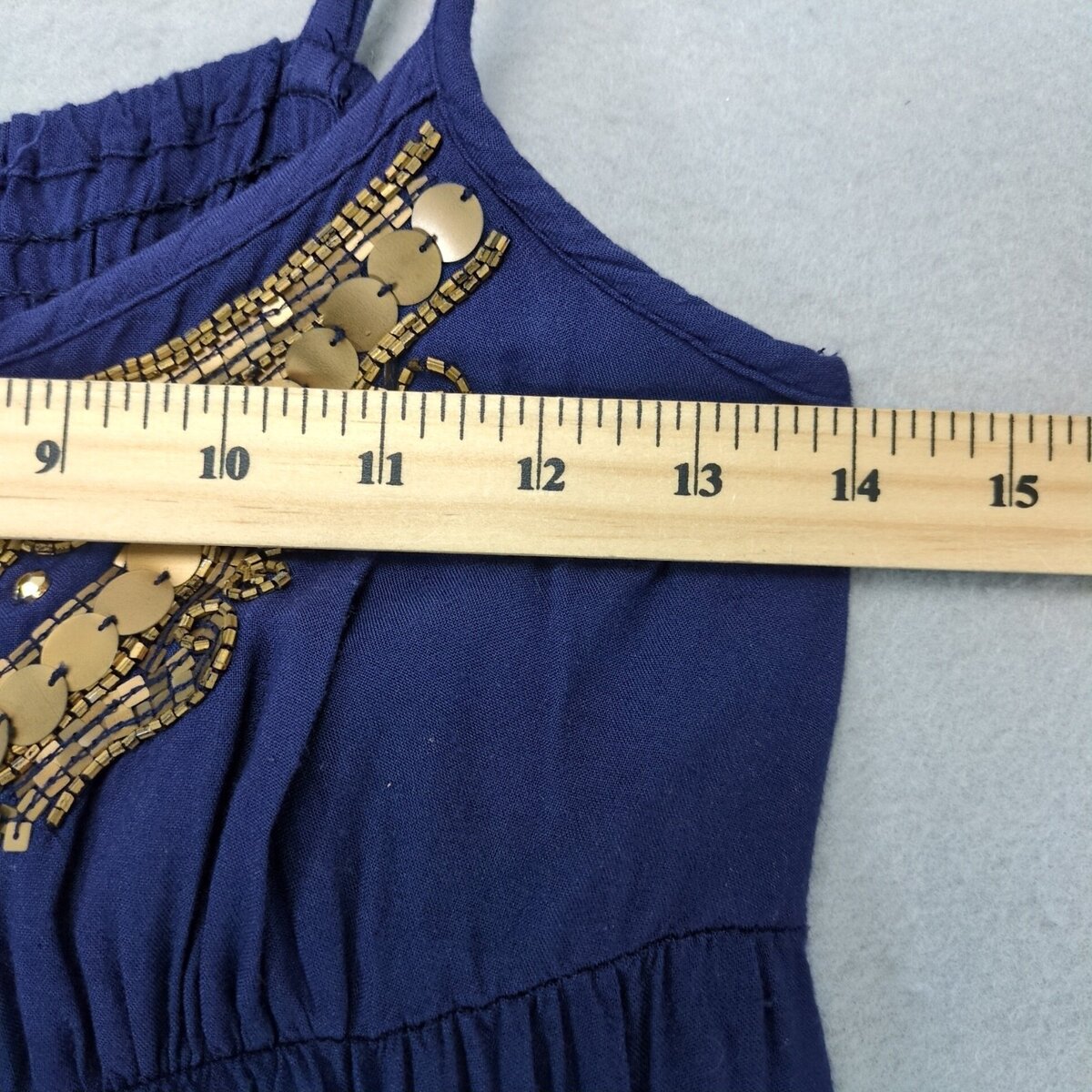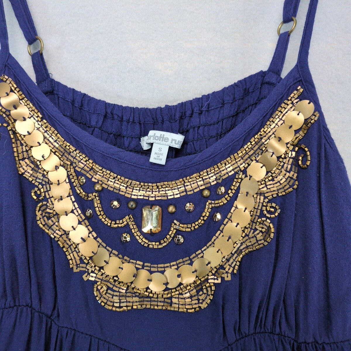 Charlotte Russe Navy Tiered Maxi Dress S Brass Beads Spaghetti Straps High Waist