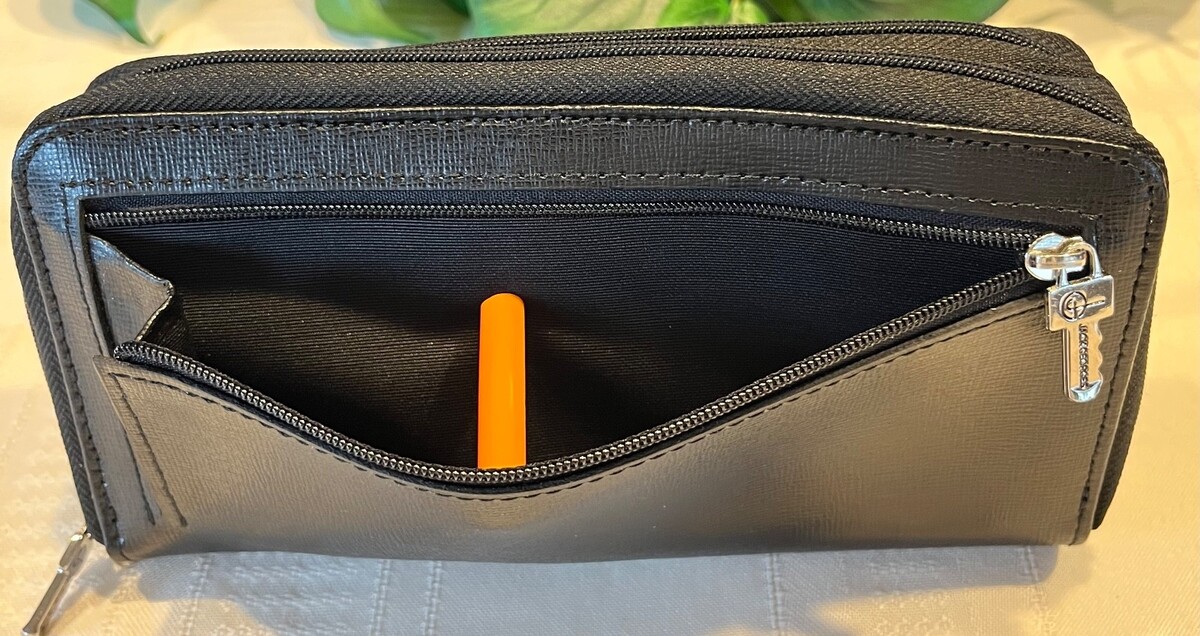 This wallet is large enough to hold your necessities. yet small enough to carry when you don't need a full size purse