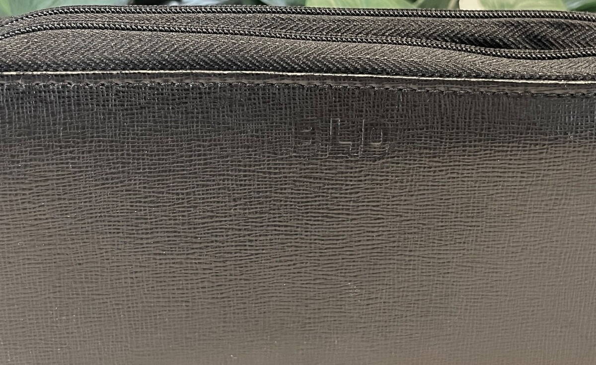 This wallet is brand new and unused. NOTE THAT THERE'S AN EMBOSSED MONOGRAM - BLD - ON THE CENTER FRONT