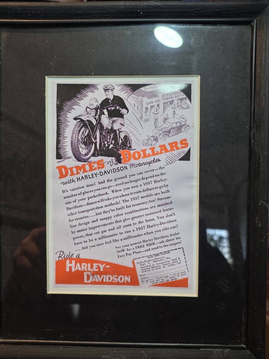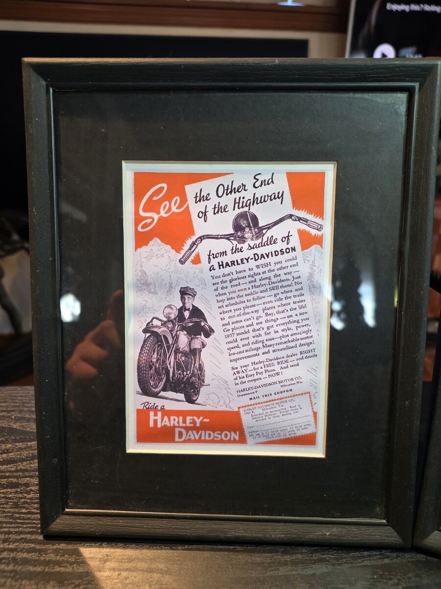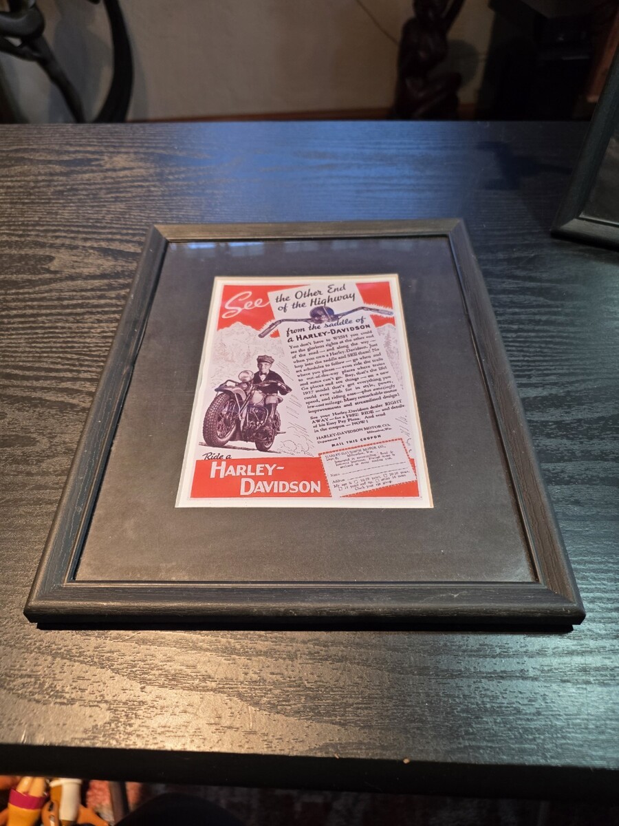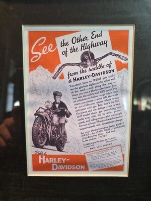 Lot Of 2 Framed Custom Printed, Not Original Harley Davidson Magazine Ad Vintage
