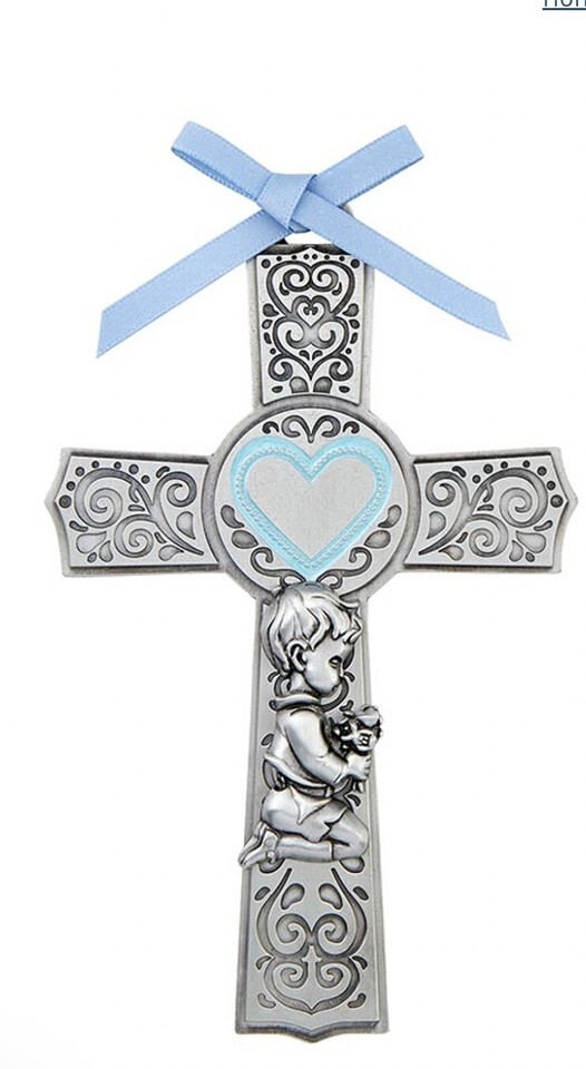 You are purchasing a very nice boy's crib cross with a blue heart on the center of the cross.