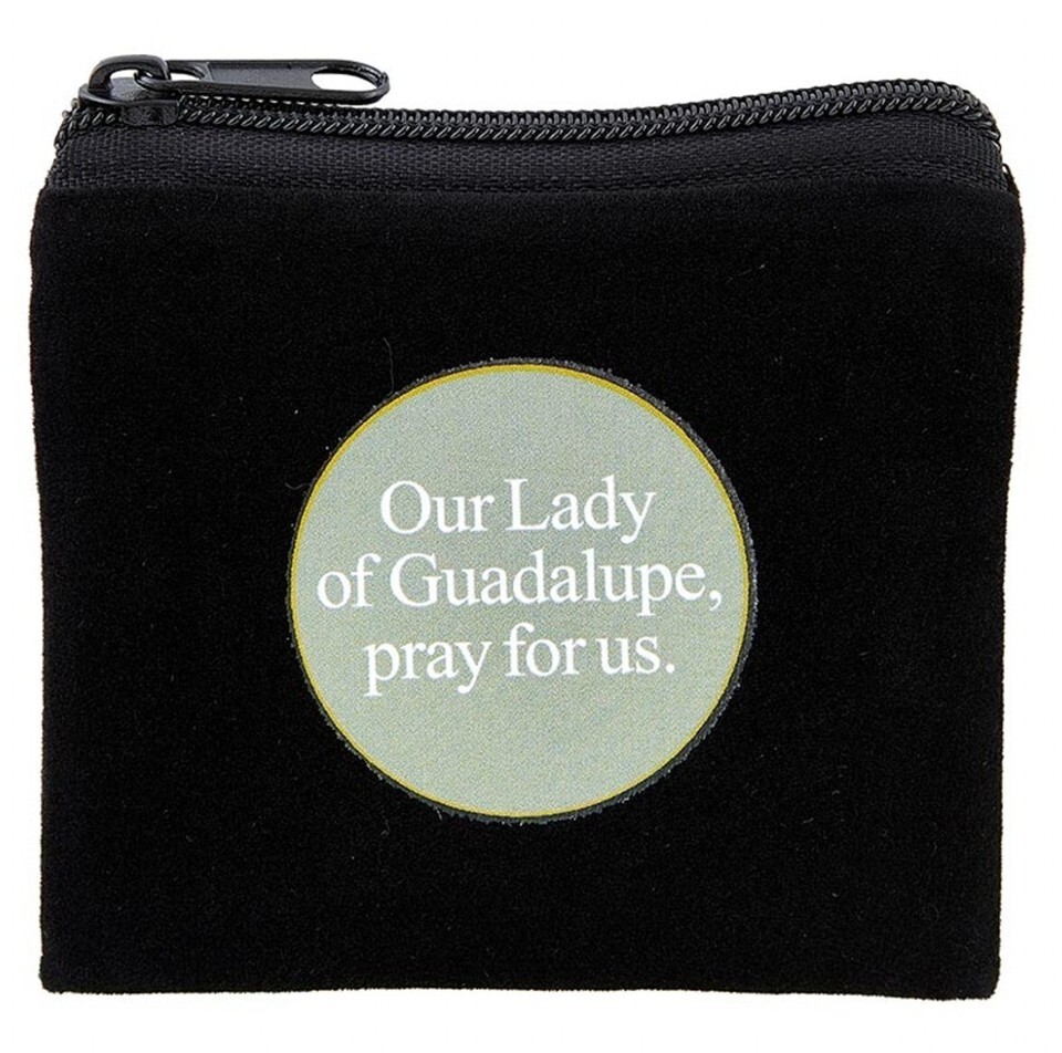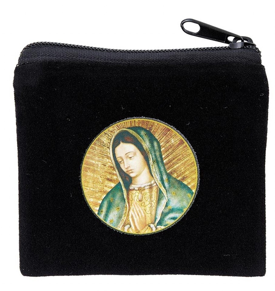 Our Lady of Guadalupe Small Black 3" Zip Rosary Pouch, New #AB-038