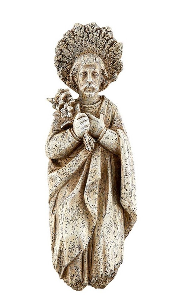 Your purchase is for a very nice stone finish plaque of Saint Joseph. Bring this unique piece , to your home as a reminder how He was the one besides Our Blessed Mother, that spent the most time with Jesus. He is a very powerful saint, patron and protector of the Catholic Church. He is also the patron saint of the Family, in addition to his patronages of the sick and of a happy death. Patron of carpenters.