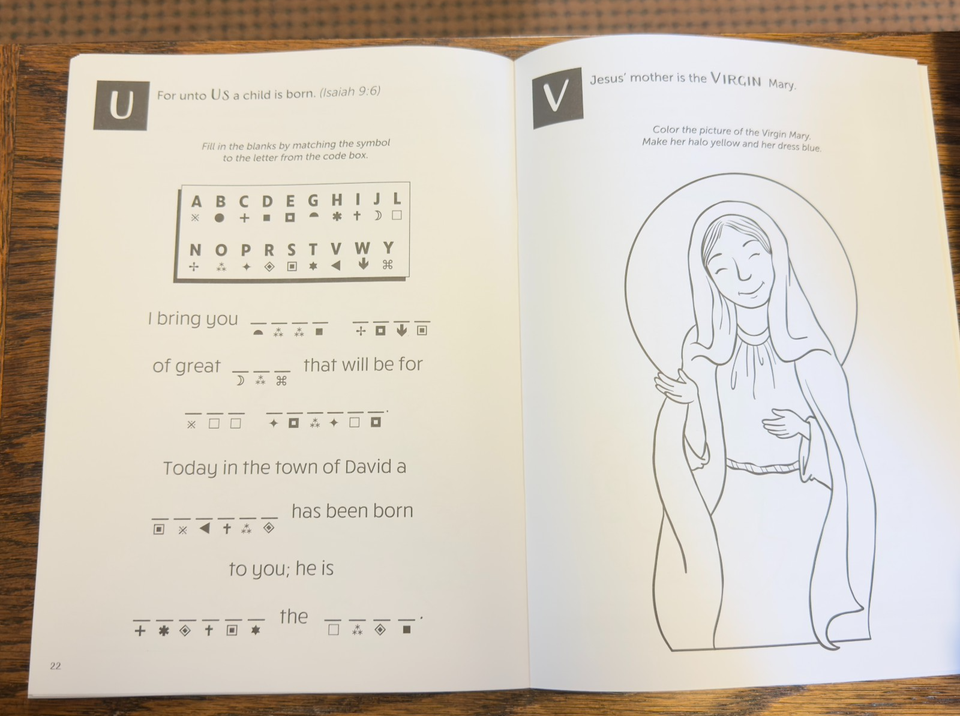 What a perfect way to teach your children at home, catholic school, CCD classes about christmas while learning their abc's.