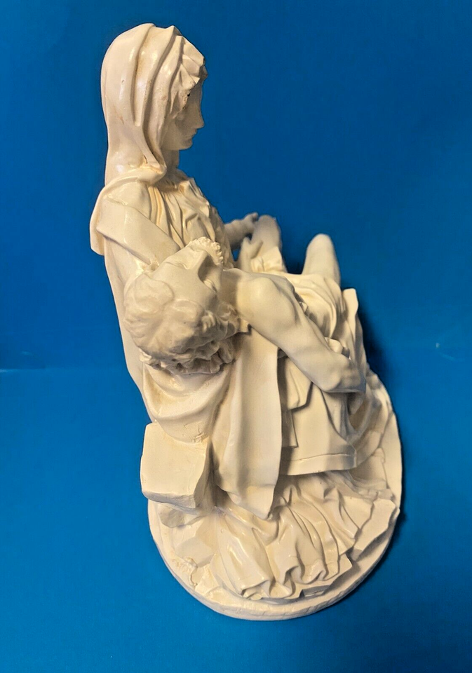 You are purchasing a beautiful large white statue with a stone finish of the Pieta. It's statue depicts the body of Jesus on the lap of his mother Mary after crucifixion.