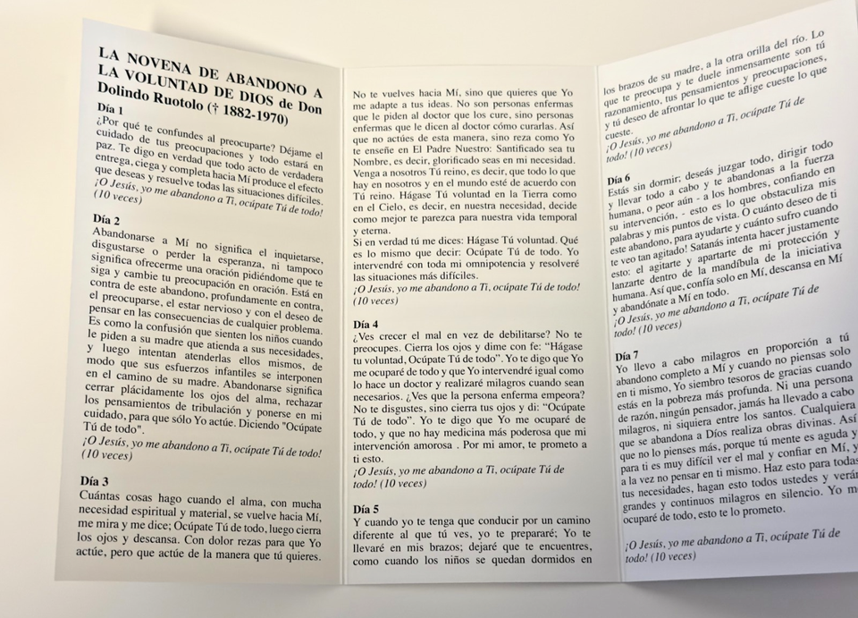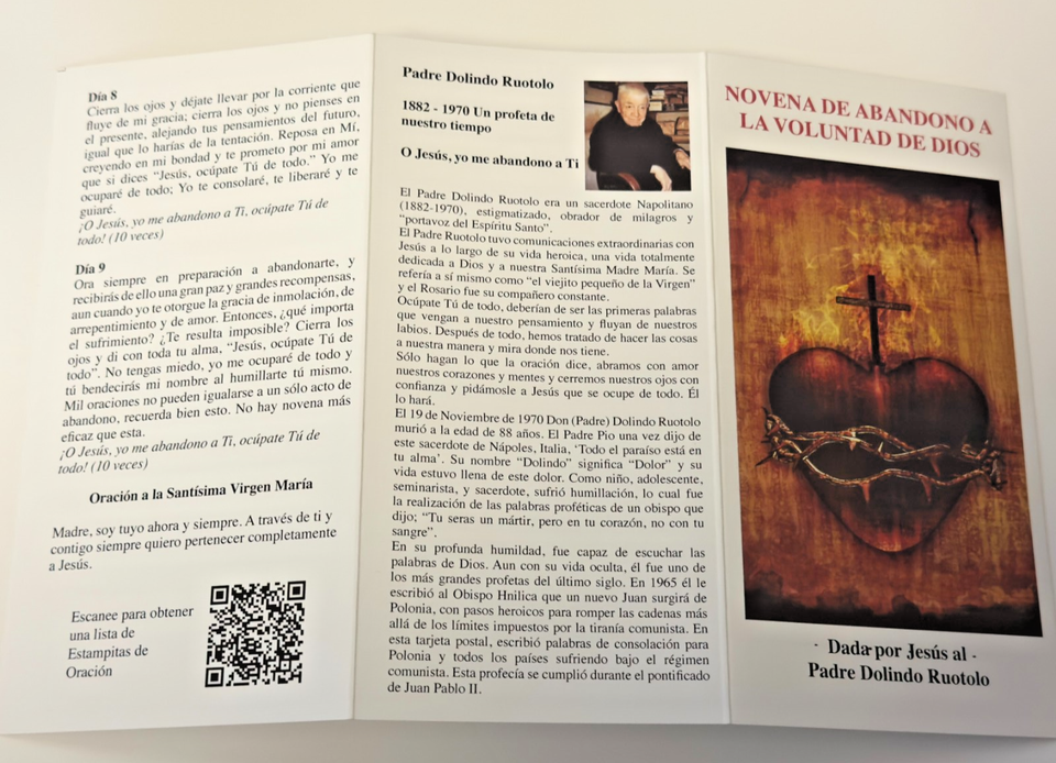 Novena de Abandono a La Voluntad de Dios, en triptico, del Padre Dolindo Ruotolo