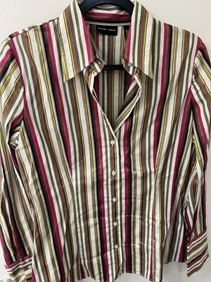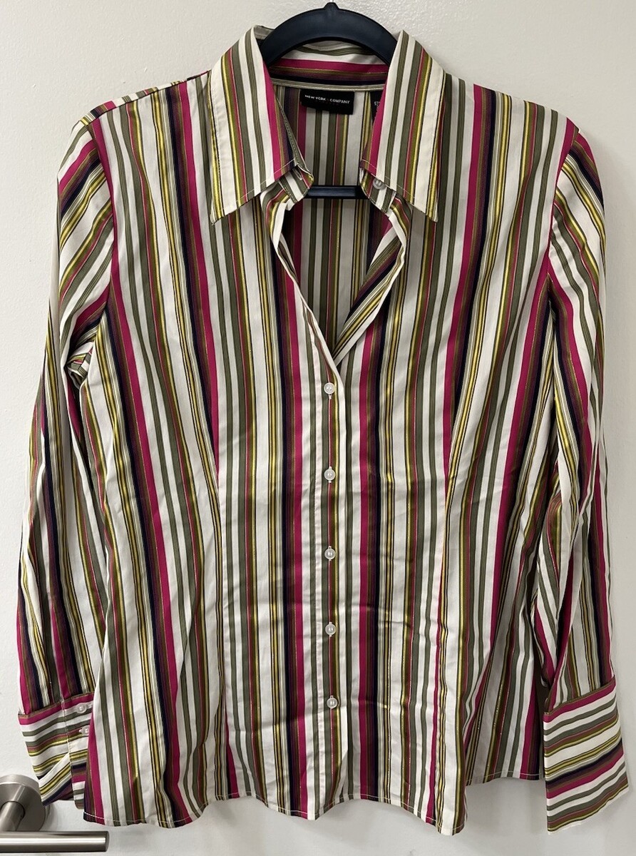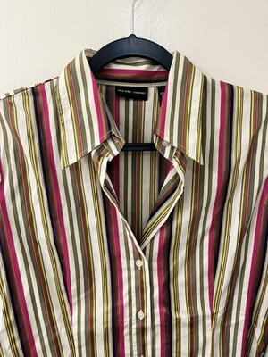 New York & Company Button Down Shirt SIZE Medium White green gold berry Stripe