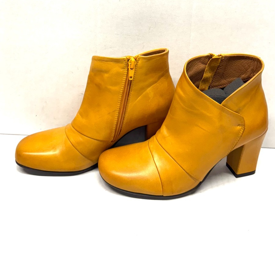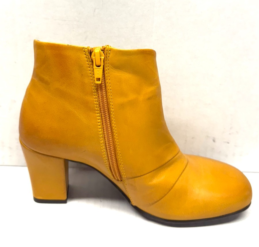 MIZ MOOZ SOFT LEATHER HEELED BOOTIE SIDE ZIP MUSTARD 37EU / 7US NEW # Z-64
