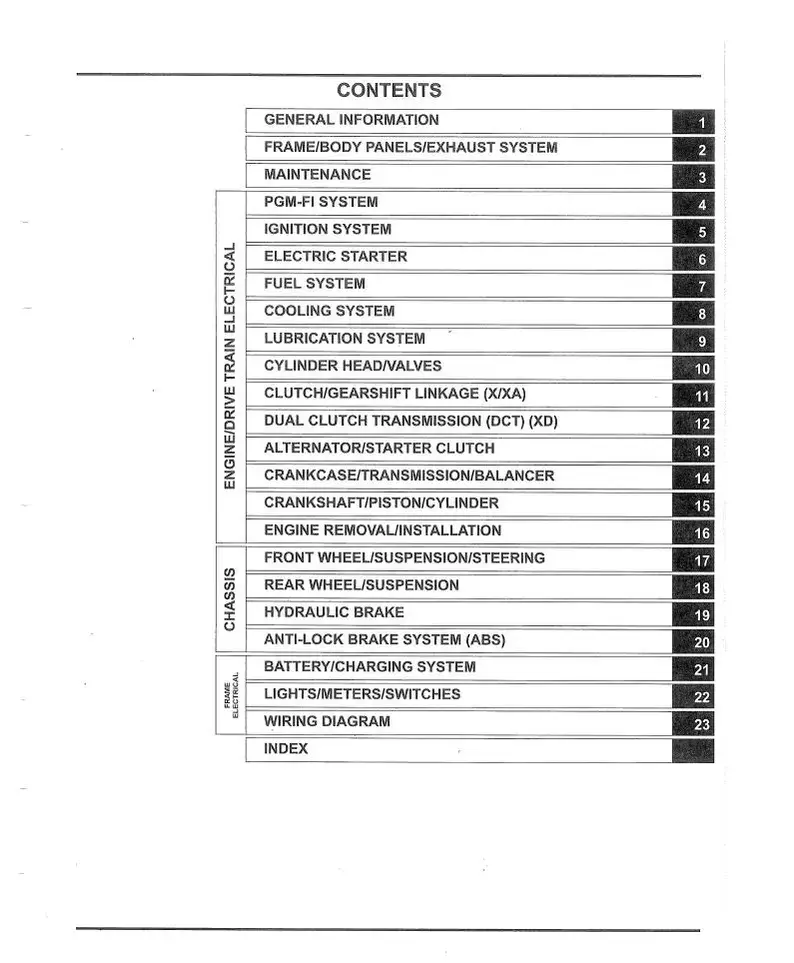 This manual includes model years 2012-2017 for the Honda NC700X NC700XA NC700XD NC750XA NC750XD models. This service manual is the most up to date version. This manual would be used by a technician at a shop.