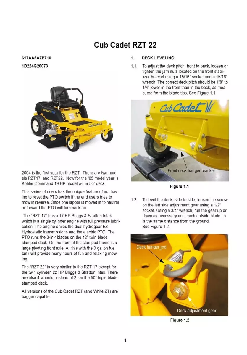 Cub Cadet - 2004 2005 Zero Turn RZT Series Service Maintenance Manual