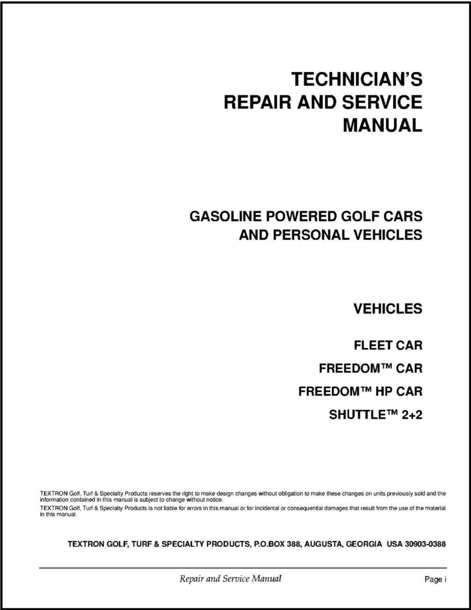 Fits EZGO - 2002-2007 Gas Golf Cart Technical Workshop Repair Manual