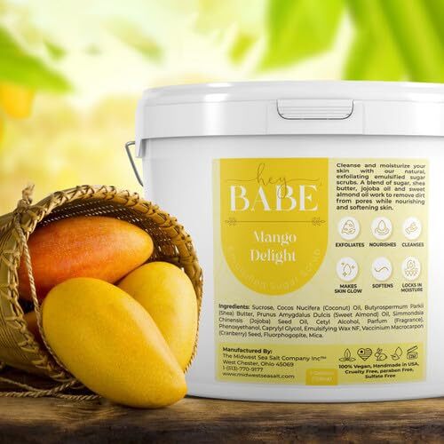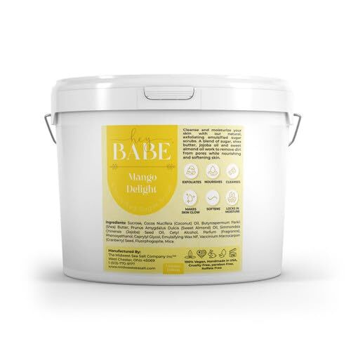 The Hey, Babe Emulsified Sugar Scrub in Mango Delight offers a unique and invigorating way to cleanse and moisturize your skin. This 128oz jar is a luxurious blend of natural ingredients like sugar, shea butter, jojoba oil, and sweet almond oil that work harmoniously to remove dirt and impurities from pores while nourishing and softening the skin. The tropical Mango Delight fragrance envelops you in a refreshing scent, transforming your skincare routine into a delightful experience. Unlike traditional scrubs, this emulsified formulation melts upon contact with body temperature, delivering a creamy exfoliation that leaves your skin feeling smooth and rejuvenated.