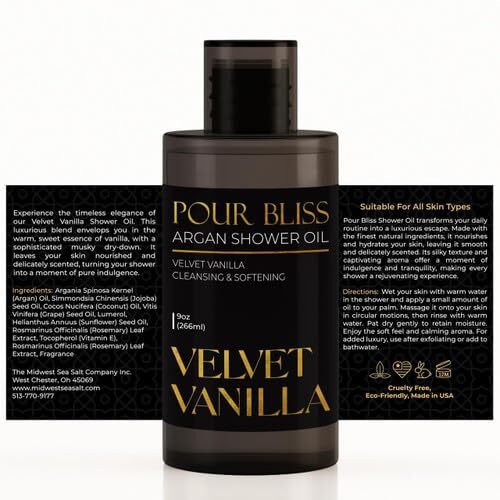 Velvet Vanilla Pour Bliss Cleansing Argan Shower Oil - 9oz, With Label