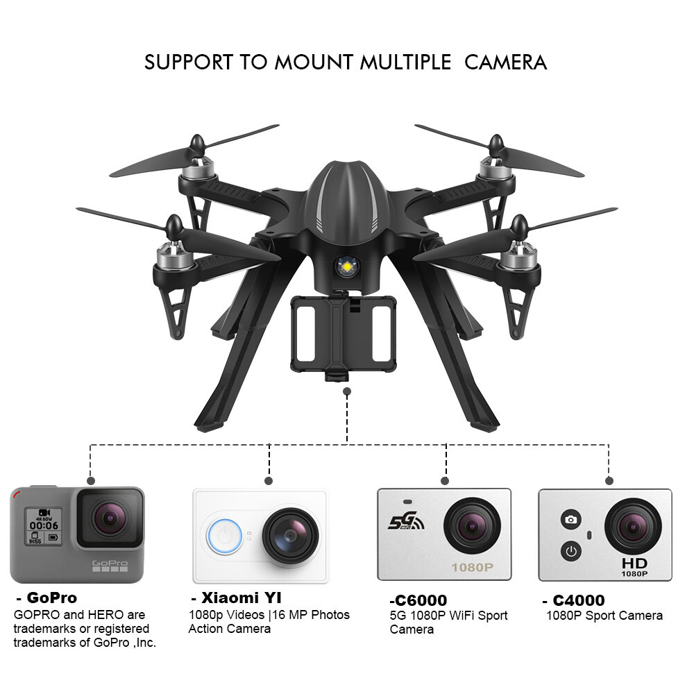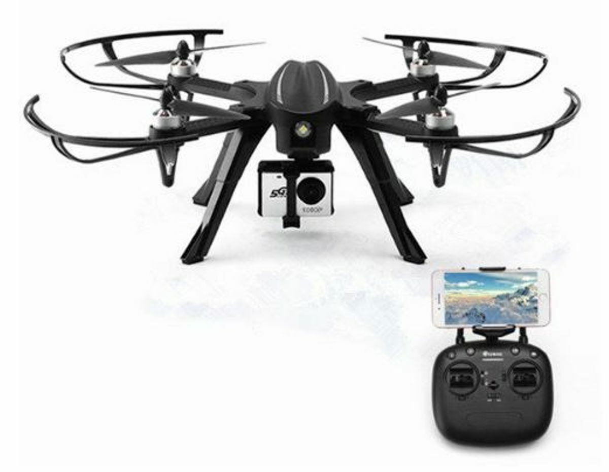 You are looking at a New Eachine EX2H Quadcopter Drone with the 1080P 5G WiFi FPV Camera (C6000 WiFi FPV Sport Camera), Brushless Motors, GoPro Compatible Camera Support and Altitude Hold. The listing pictures are to show the contents of the package. You will receive a New Eachine EX2H with the C6000 1080p FPV Sport Camera in a sealed box. This Drone has the Powerful yet quiet High Speed. MT1806 1800kv Brushless Motors. These are the same motors used in the MJX Bugs 3 Drone. The C6000 WiFi FPV Sport Camera has a range of approximately 250 Meters. Just download the app to your smart device or phone and watch where you fly live. It comes with a 7.4v 1800mah High Capacity Battery you can get up to 17 minutes of flight time. With the maximum upward lift of 230g it can easily handle a Sport Camera. It has 2 Flight Modes-Low and High Speed. Eachine also added a feature in which you can switch from Altitude Hold Mode to Professional Mode as they call it. Basically you can turn off the Altitude Hold Function for full control of the Quadcopter. Check out my other listings. If you have any questions just ask.