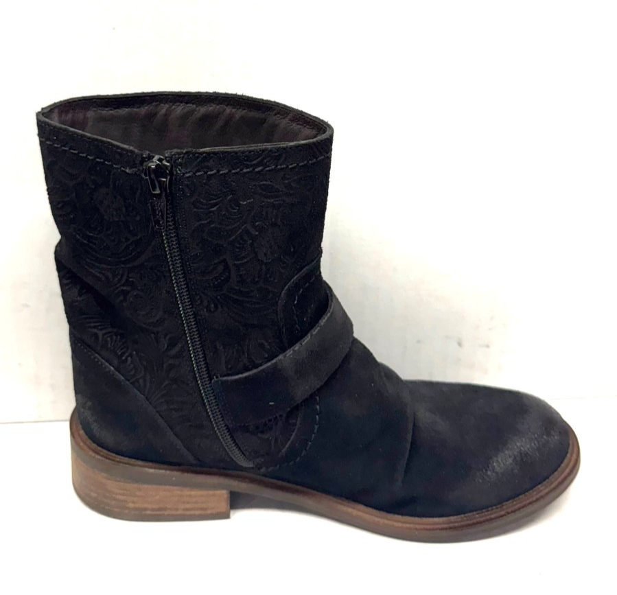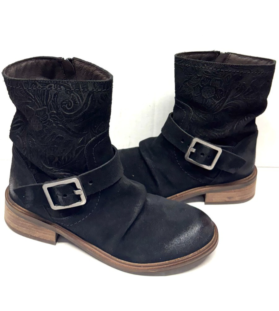 MIZ MOOZ SUEDE PRINTED LEATHER BOOT SIDE BUCKLE 37EU / 7US BLACK Z-69
