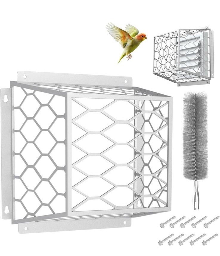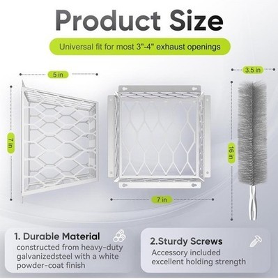 The JIANBENKJ Dryer Vent Bird Guard is a white cover guard designed to fit most standard 3" to 7" diameter dryer vents. Made of durable materials, this guard weighs approximately 1.2 pounds and measures 7" x 7" x 5" in dimensions for 3? to 4? bathroom . This product is specifically created to prevent birds and other animals from nesting or blocking the vent, ensuring proper airflow and reducing the risk of dryer lint accumulation and fires. Easy to install and maintain, this dryer cover guard is a practical and essential home appliance accessory.