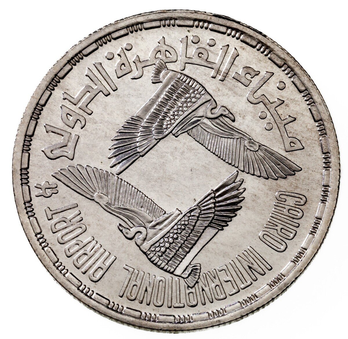 1405-1985 Egypt 5 Pounds Silver Coin in BU, 25th Anni. Cairo Int. Airport KM 585