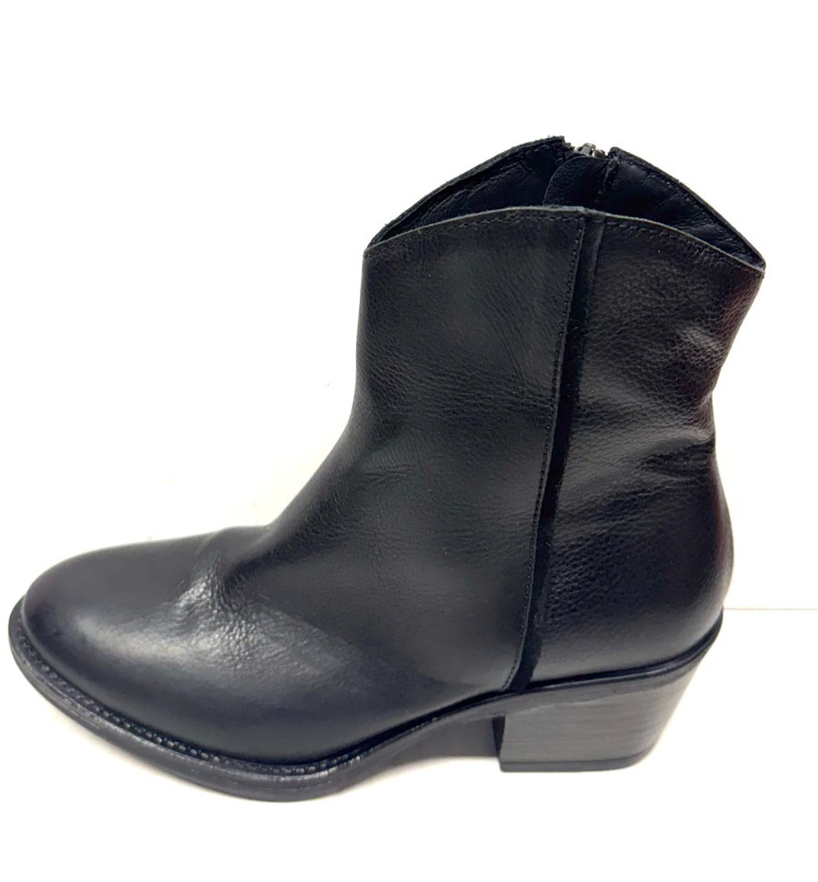 MIZ MOOZ LEATHER BOOT WESTERN LOOK SIDE ZIP 37EU / 7US BLACK Z-75