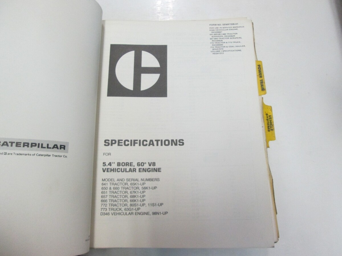CATERPILLAR 657-666 TRACTOR SCRAPER SPECIFICATIONS SERVICE REPAIR MANUAL BINDER