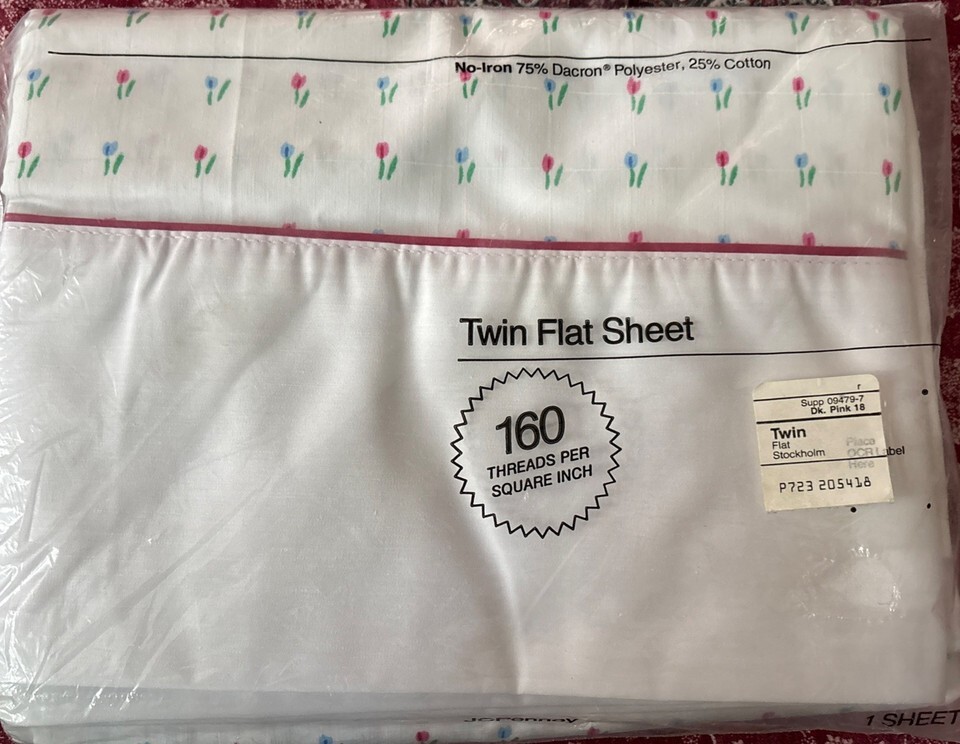 JCPenney No-Iron Dacron Twin Flat Sheet Floral White New Old Stock