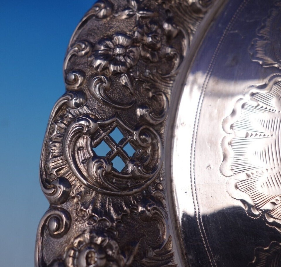 Gorgeous Vincenz Carl Dub Austrian .800 oval silver tray. This piece has a pierced border with lattice and flowers. It is engraved in the center with cattails and rococo scrollwork (see photos). The tray measures 16 1/2" x 13" and weighs 29.1 troy ounces. It is in good vintage condition as shown in the photos. Outstanding!