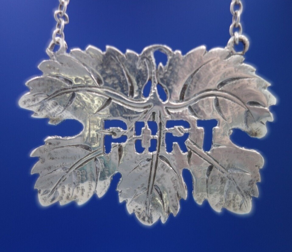 Sterling Silver Liquor Label "Port" Cast Leaf 2 1/8" x 1 1/2" (#6862)