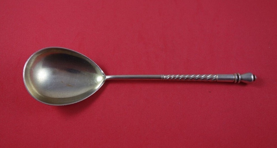 Russian sterling silver twisted handle Preserve Spoon Dated 1896 Engraved on Back of Bowl, 7 3/4". This piece weighs 2.37 troy ounces. It is in excellent condition.