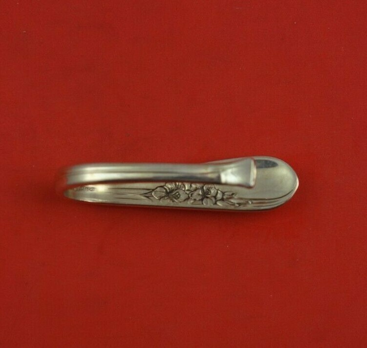 Sterling silver original Napkin Clip 2 1/4" in the pattern Blossom Time by International. It is not monogrammed and is in excellent condition.