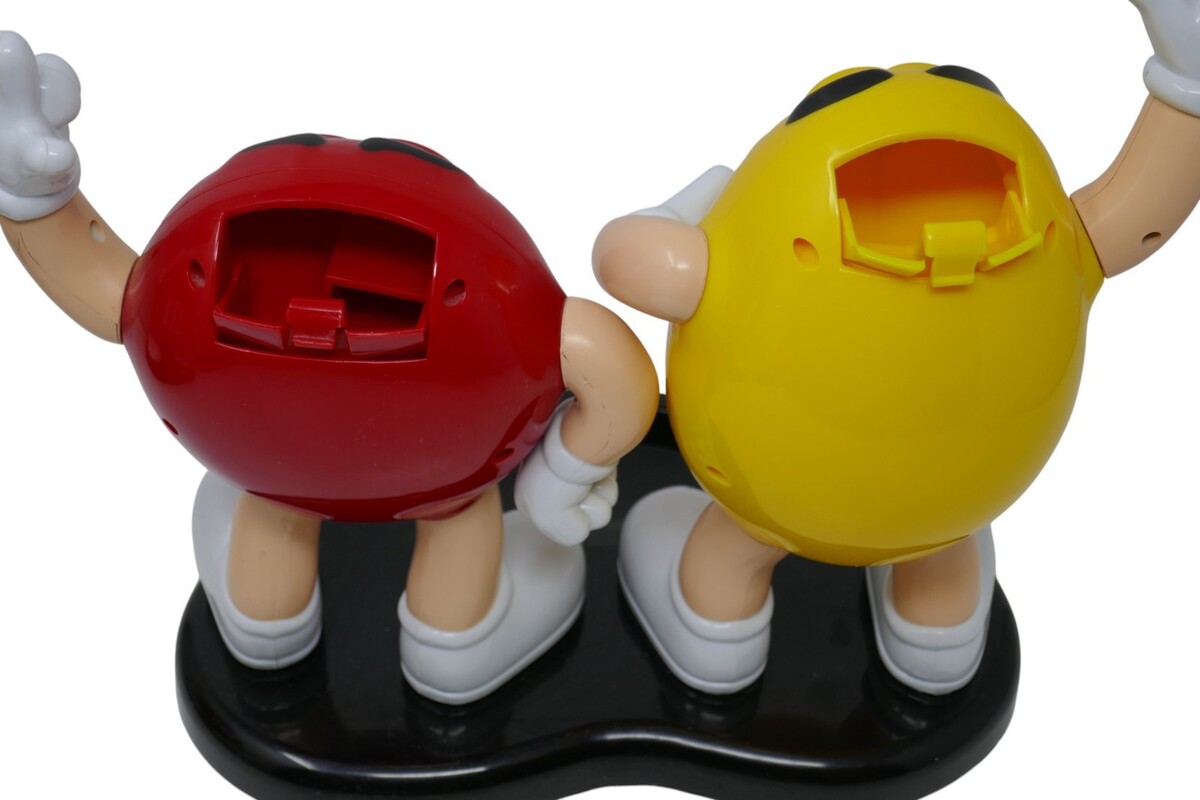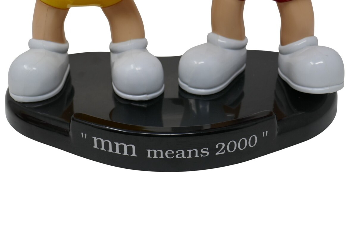 The M M 2000 mm Means 2000 Peanut Plain Candy Dispenser is a colorful and original advertising piece featuring the iconic M M brand. This candy dispenser measures approx. 10.5" tall with a few minimal scuffs. Perfect for candy lovers and collectors alike, this dispenser is sure to delight visitors with its unique design and functional use.