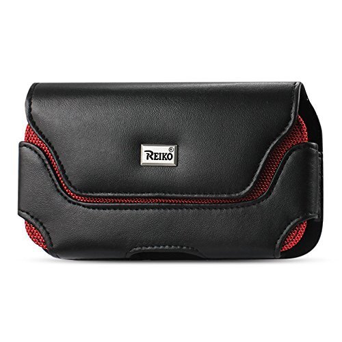 Reiko red bee nest horizontal phone pouch with a soft interior to help keep your phone scratch free 5.99 X 3.25 X 0.72 inches in black. Stays close to your body allowing you to feel the vibrate mode clearly. High quality leather like material.