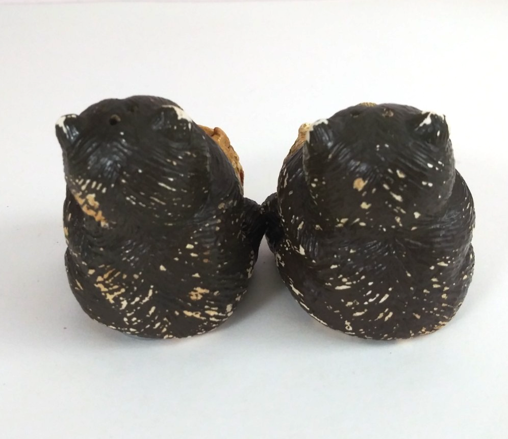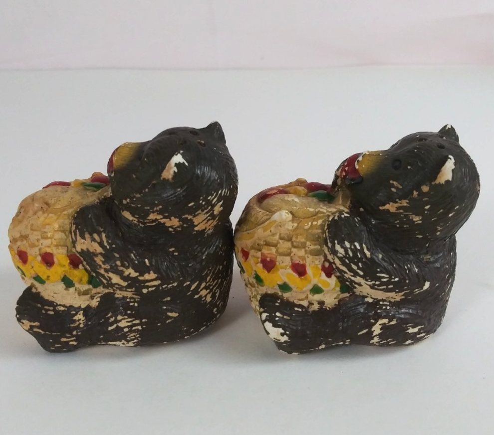 This is for a Vintage Chalkware Bears With Baskets Of Fruit Salt Pepper Shakers.